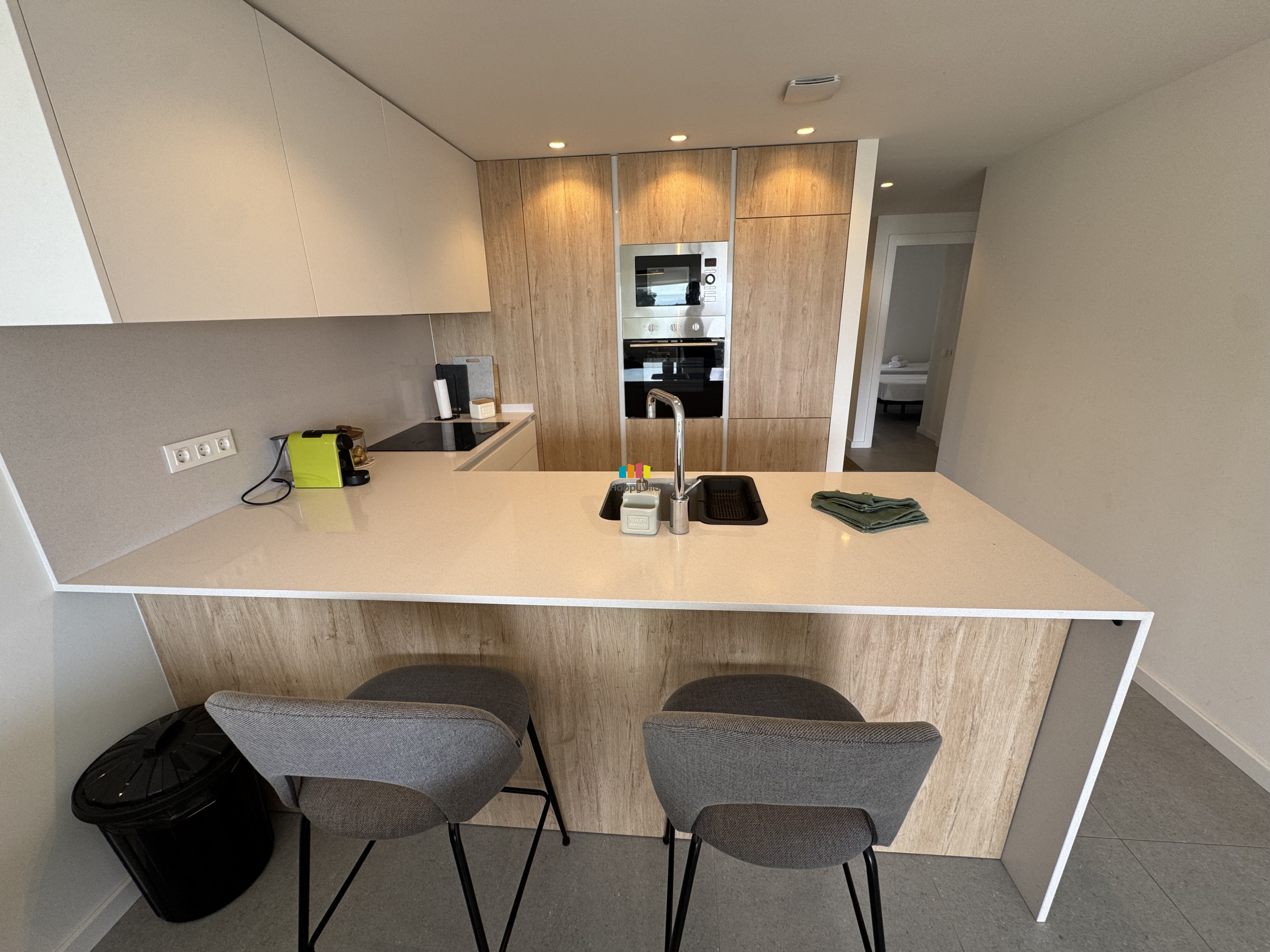 La cocina americana, de inducción, está equipada con nevera, microondas, horno, congelador, lavavajillas, vajilla/cubertería, utensilios/cocina, cafetera, tostadora, hervidor de agua y exprimidor.